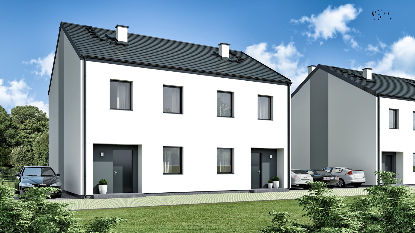 Wnętrza zostały zaprojektowane z myślą o wygodzie: duży salon z przesuwnym oknem, przestronna kuchnia z możliwością wydzielenia, a także użytkowy strych z posadzką, oknami i przygotowaną instalacją. Do tego dwa miejsca postojowe w cenie, ogrzewanie podłogowe i możliwość stworzenia wymarzonego salonu z kominkiem.